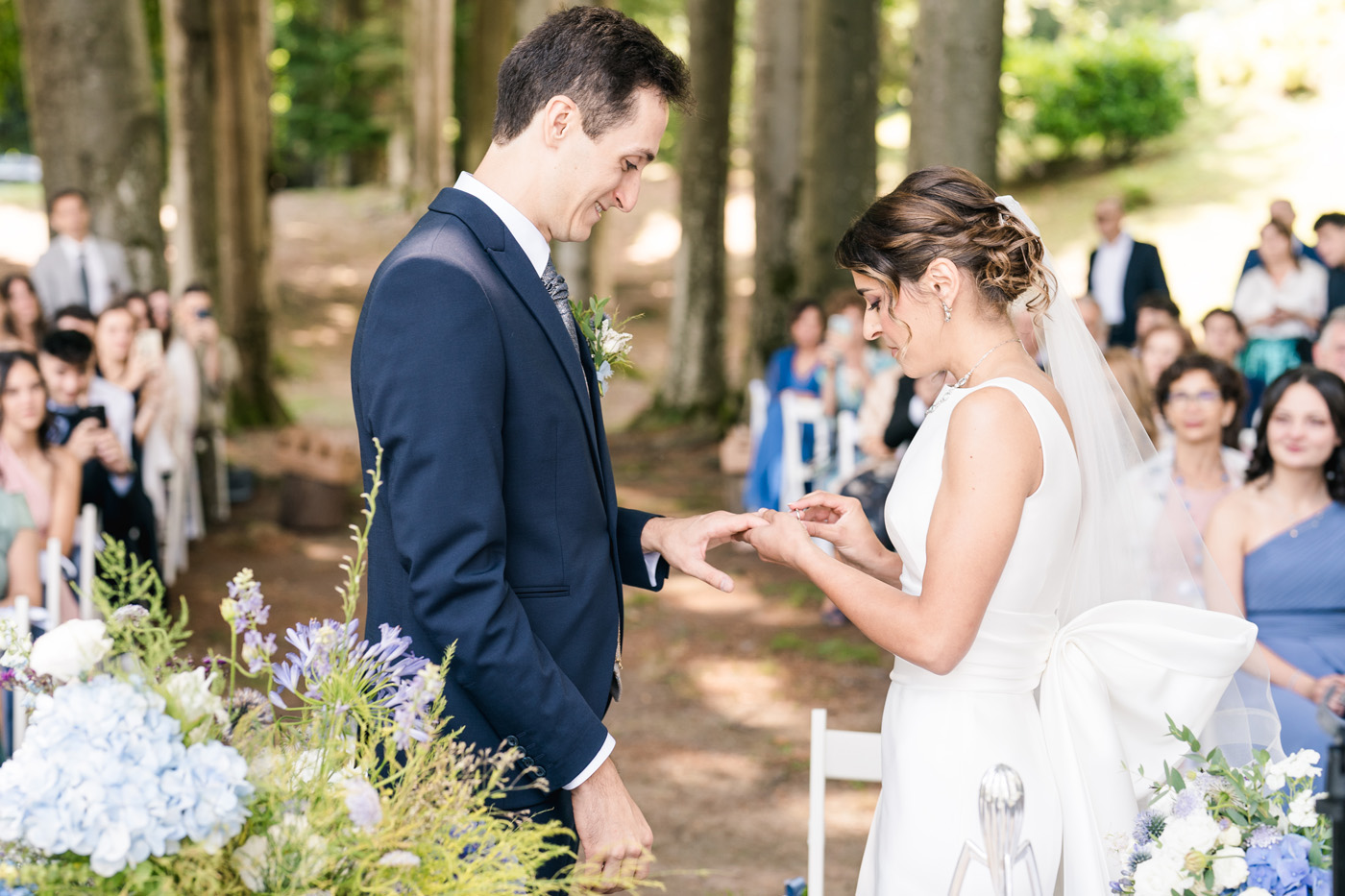 Sopra l’incanto di Bellagio, avvolti dalla frescura di un bosco secolare, Giorgia e Michele hanno celebrato il loro amore con una cerimonia magica e fuori dal comune. In questa calda giornata estiva, l’atmosfera solenne della natura si è fusa perfettamente con l’energia di un matrimonio giovane e vibrante. È stata una giornata ricca di vita, dove il rito nel bosco ha lasciato spazio a una festa dinamica, circondata da amici e da un entusiasmo contagioso.